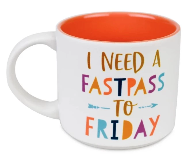 Wake up and startΒ wishing for the weekend while you sip your brew from this glossy mug with ”I need a FastPass to Friday” text and a vibrant contrast interior.