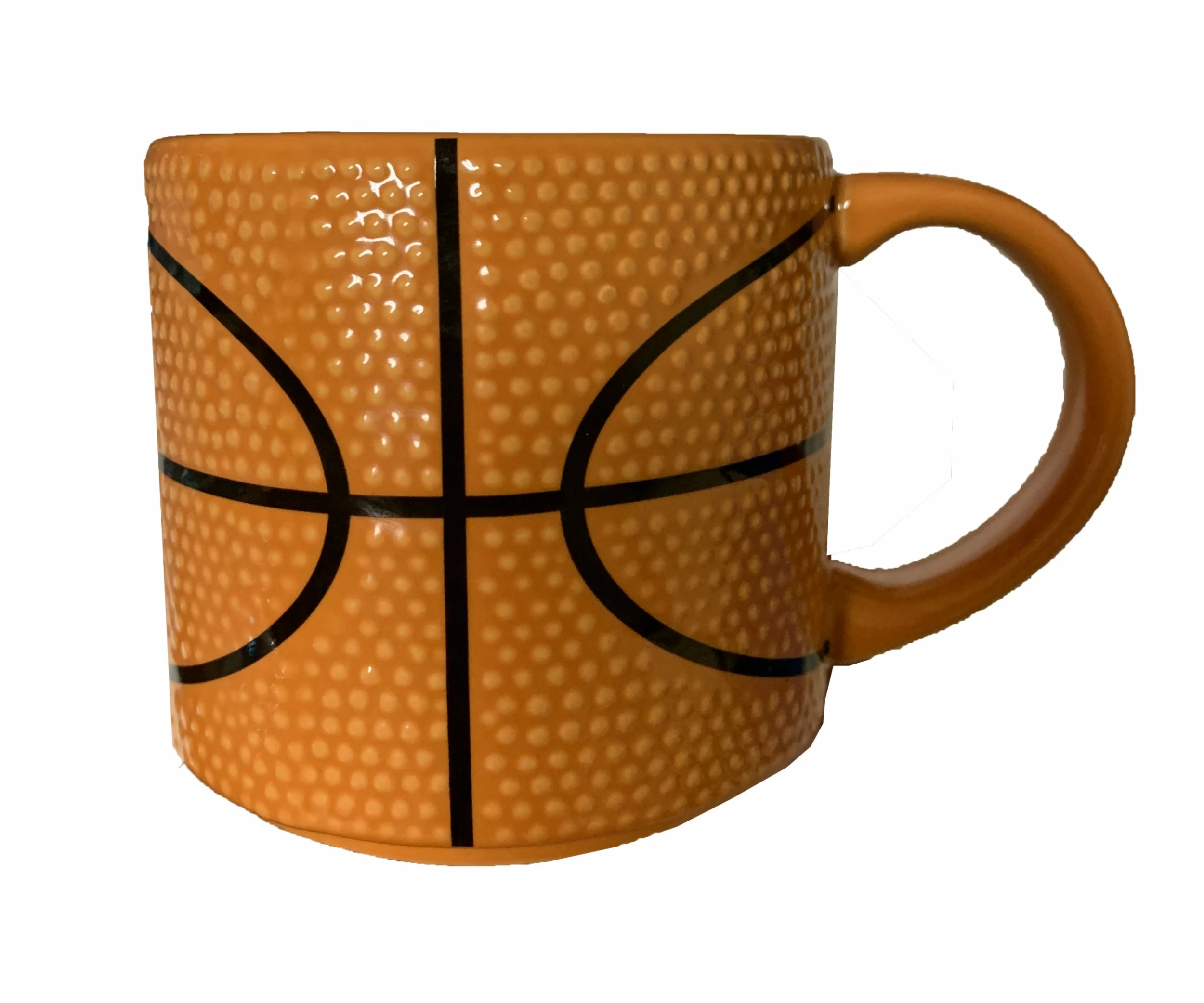 Enjoy your morning coffee with this fun basketball textured coffee mug, with Mickey and all his pals inside on the Basketball Court.