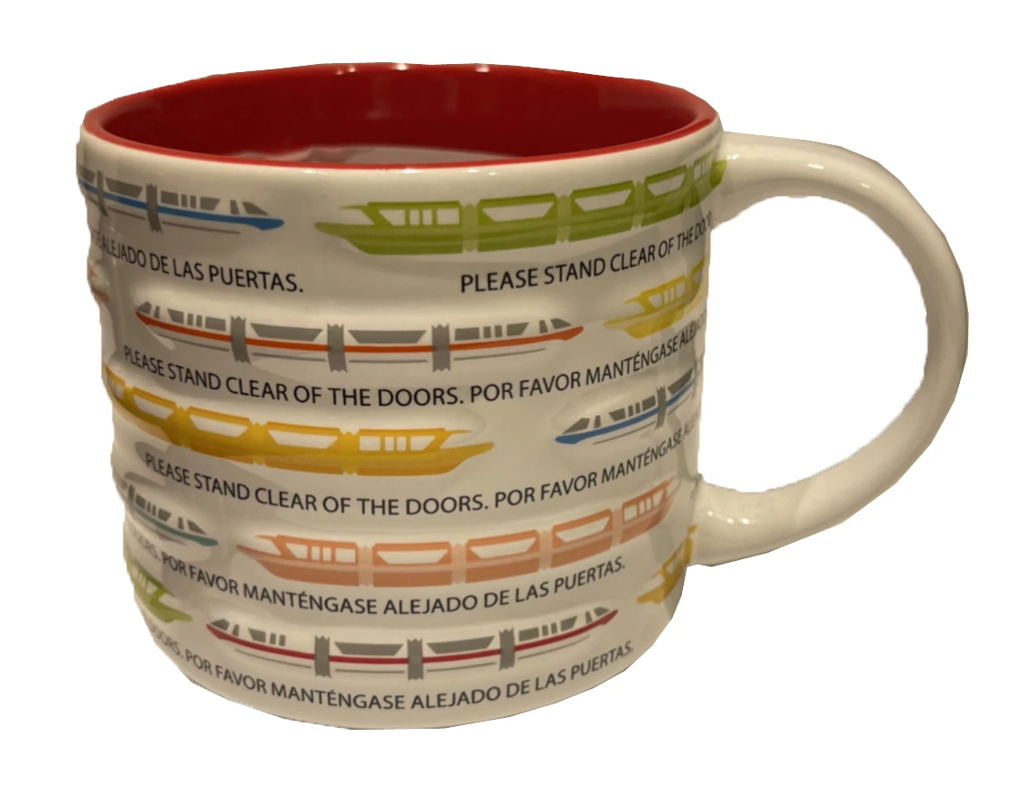 Have your morning coffee with clear reminders of your Walt Disney World Vacation with this fun colorful much with Monorails in different colors, and “Please Stand Clear of the Doors” Text.
