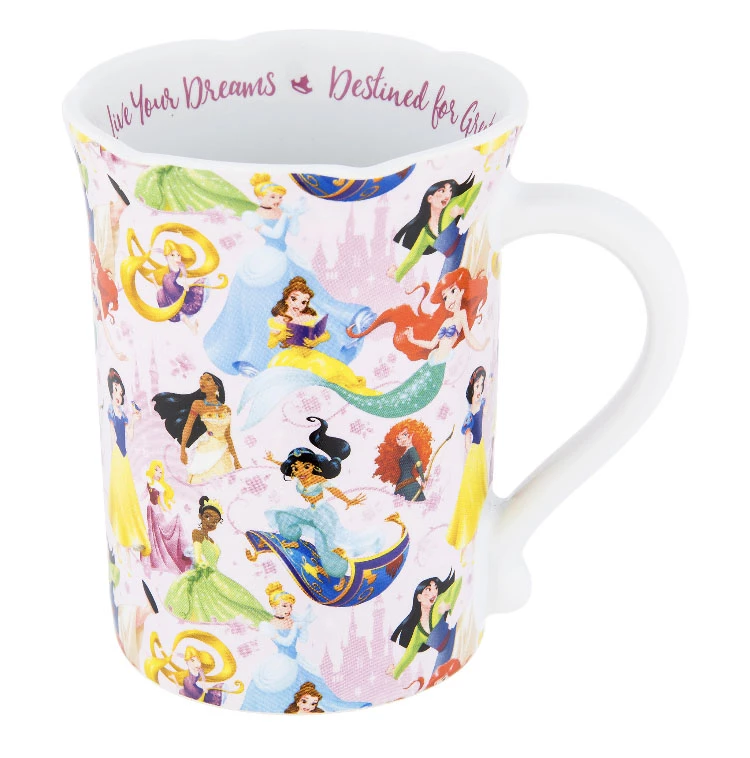 Wake up to your delicious coffee with this all over Princess Coffee Mug, with a reminder to Live your Dreams. Direct from Walt Disney World.ย