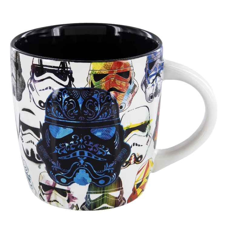 Feel the Force when you use this Coffee Mug featuring iconic stormtrooper helmets plussed out with various colors and designs.