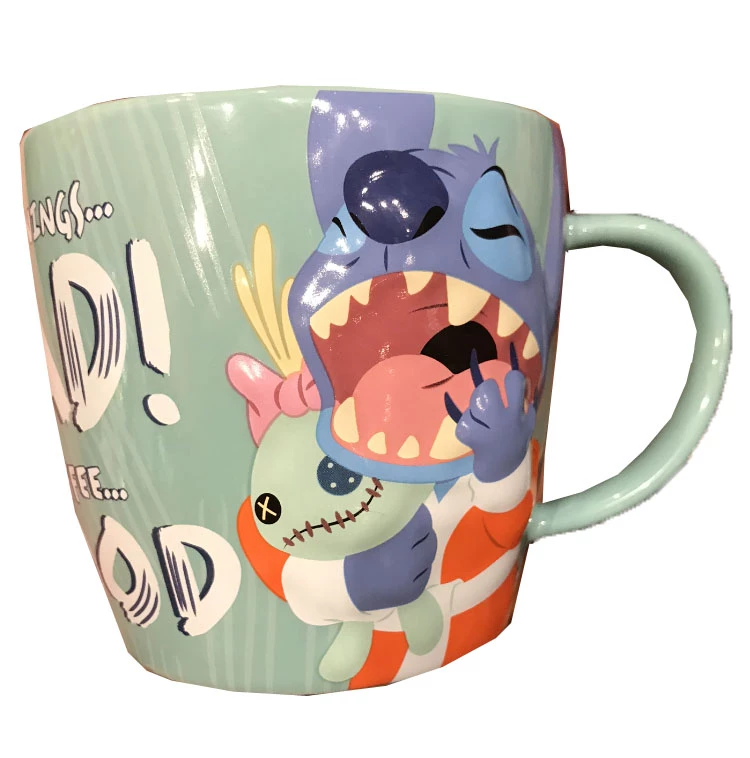 Wake up and smile as you have your cup of coffee with this cute mug. Features Stitch, with the saying Mornings Bad! Coffee Good.