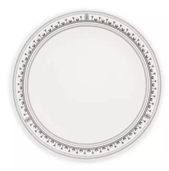 Essential and elegant, this ceramic dinner plate from our Disney Homestead Collection features a tasteful pattern of Mickey icons and filigree around the rim. Serve up smiles with every meal!