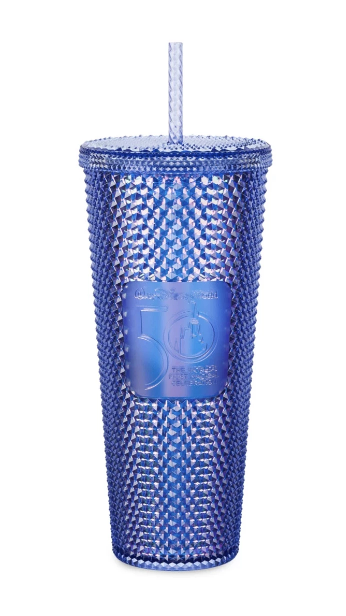 Drink-in happy memories of the first 50 years of Walt Disney World with this commemorative tumbler and straw. The dynamic allover raised geometric design includes the logo for ”The World’s Most Magical Celebration.”