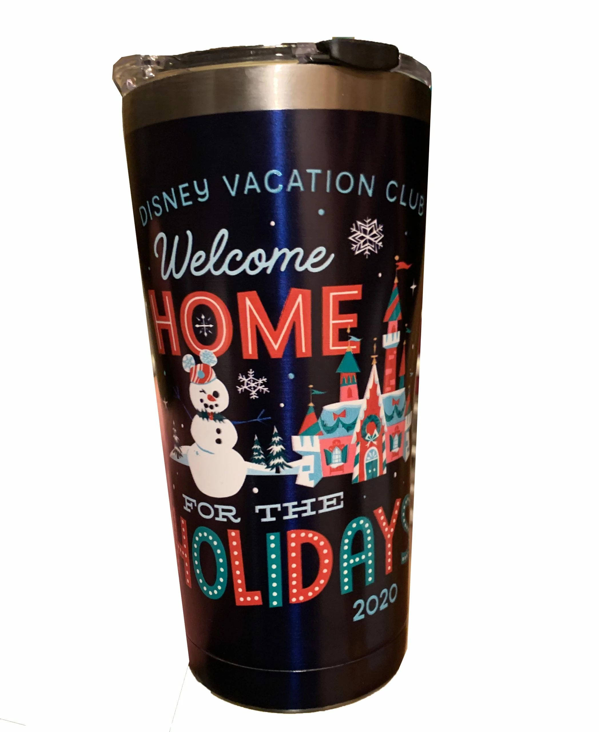 Have a taste of home for the Holidays with this festive Home for the Holidays Disney 2020 Vacation Club Travel Tumbler.