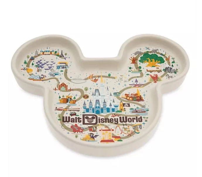Our charming trinket dish makes a handsome addition to your dΓ©cor and a special memento of your visit to Walt Disney World! Enjoy looking at the stylized screen art of the landmarks and attractions from the Resort’s four Parks or use it to store small items.