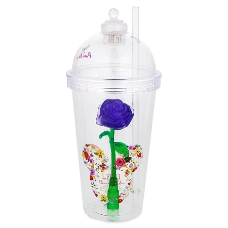 this tumbler literally lights up. The floral Mickey icon on the outside