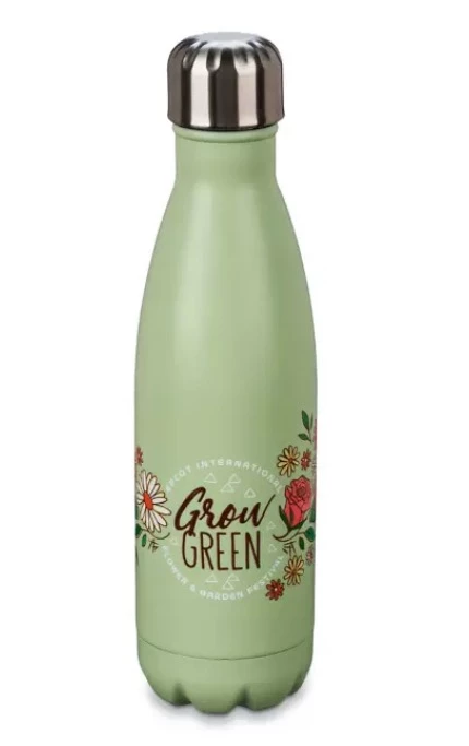 You’ll enjoy drinking in the delights of the 2022 EPCOT International Flower & Garden Festival in the company of Mickey who is featured on this water bottle. He’s taking a breather from tending to the colorful flowers that decorate the stainless steel bottle which encourages you to ”Grow green” while also refreshing happy memories of the festival.